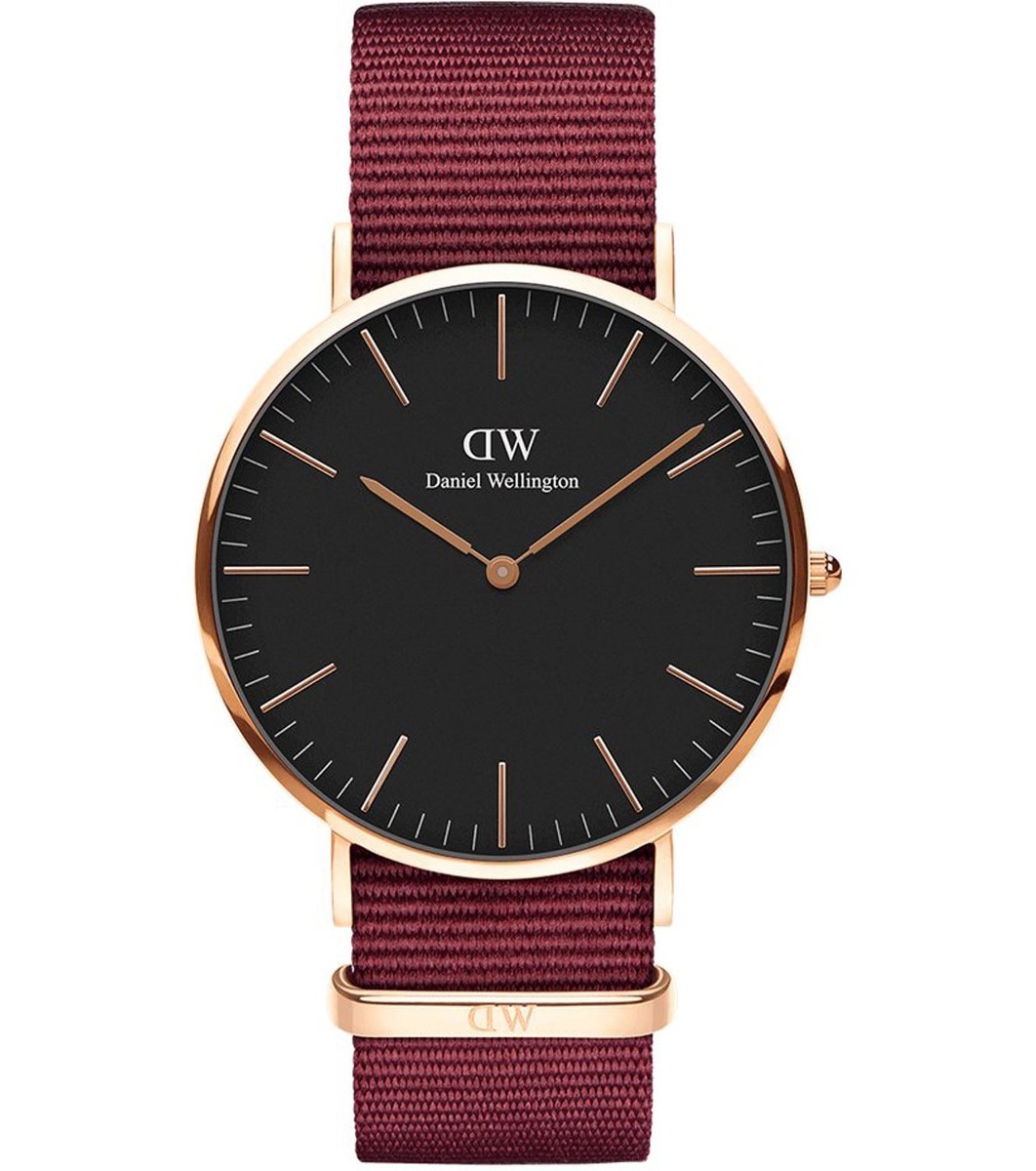 Daniel Wellington Ceas unisex cu curea textilă bordo și cadran negru Mecanism: cuarț