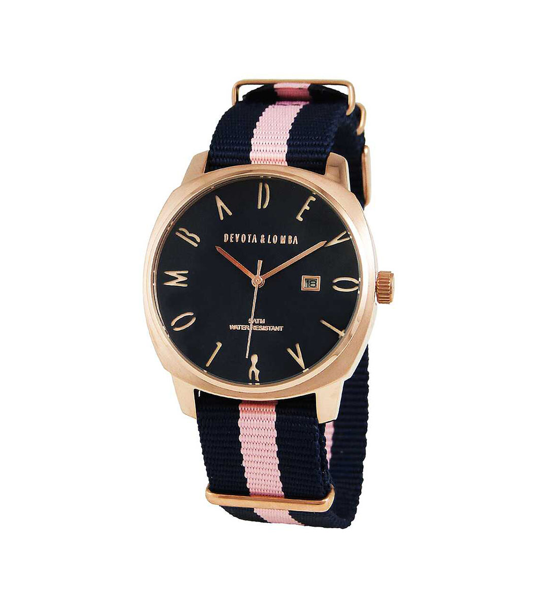 Devota & Lomba Ceas unisex din aur roz și bleumarin Display analogic