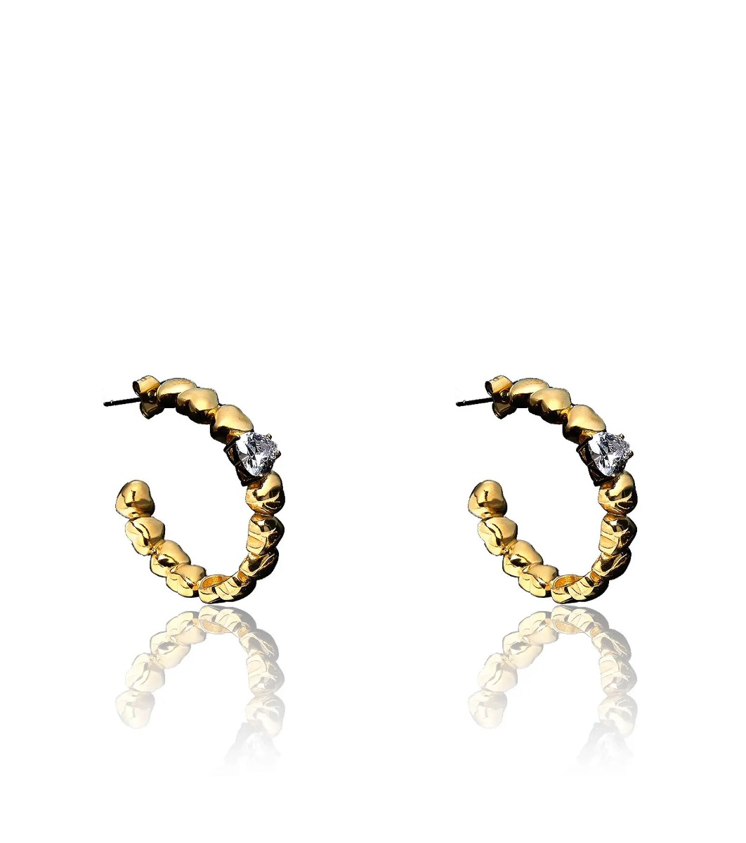 Cercei eleganți cu formă rotundă și elemente decorative.
