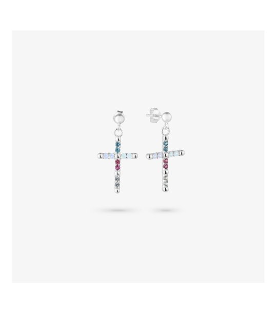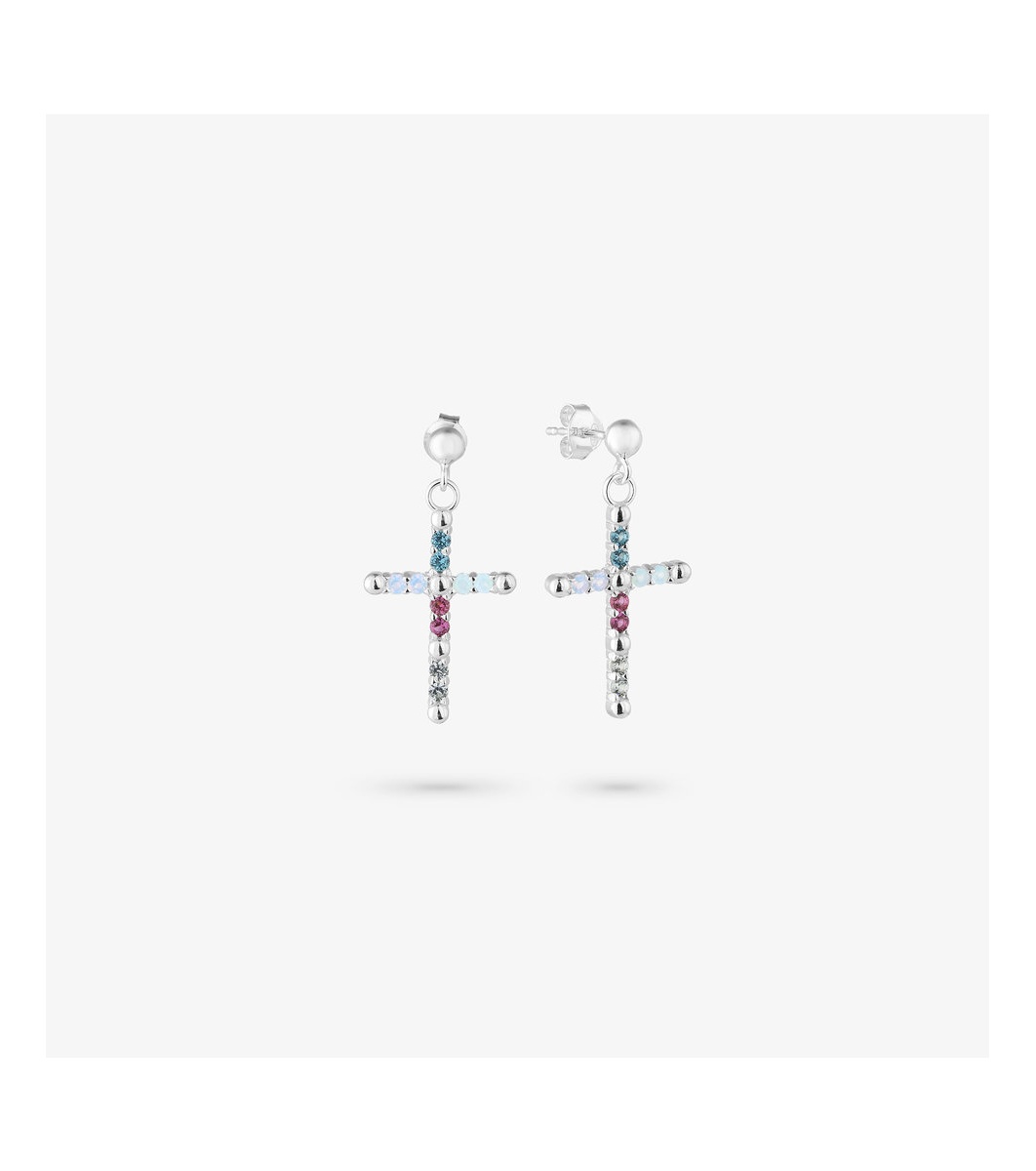 Cercei în formă de cruce decorați cu multe pietre colorate. Potriviti pentru femei, combină eleganța și stilul, atrăgând atenția printr-un design sofisticat.
