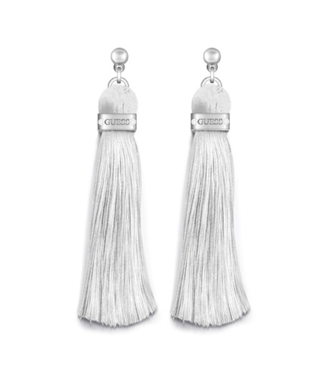 Guess Cercei cu franjuri albe Cercei cu franjuri lungi din material textil