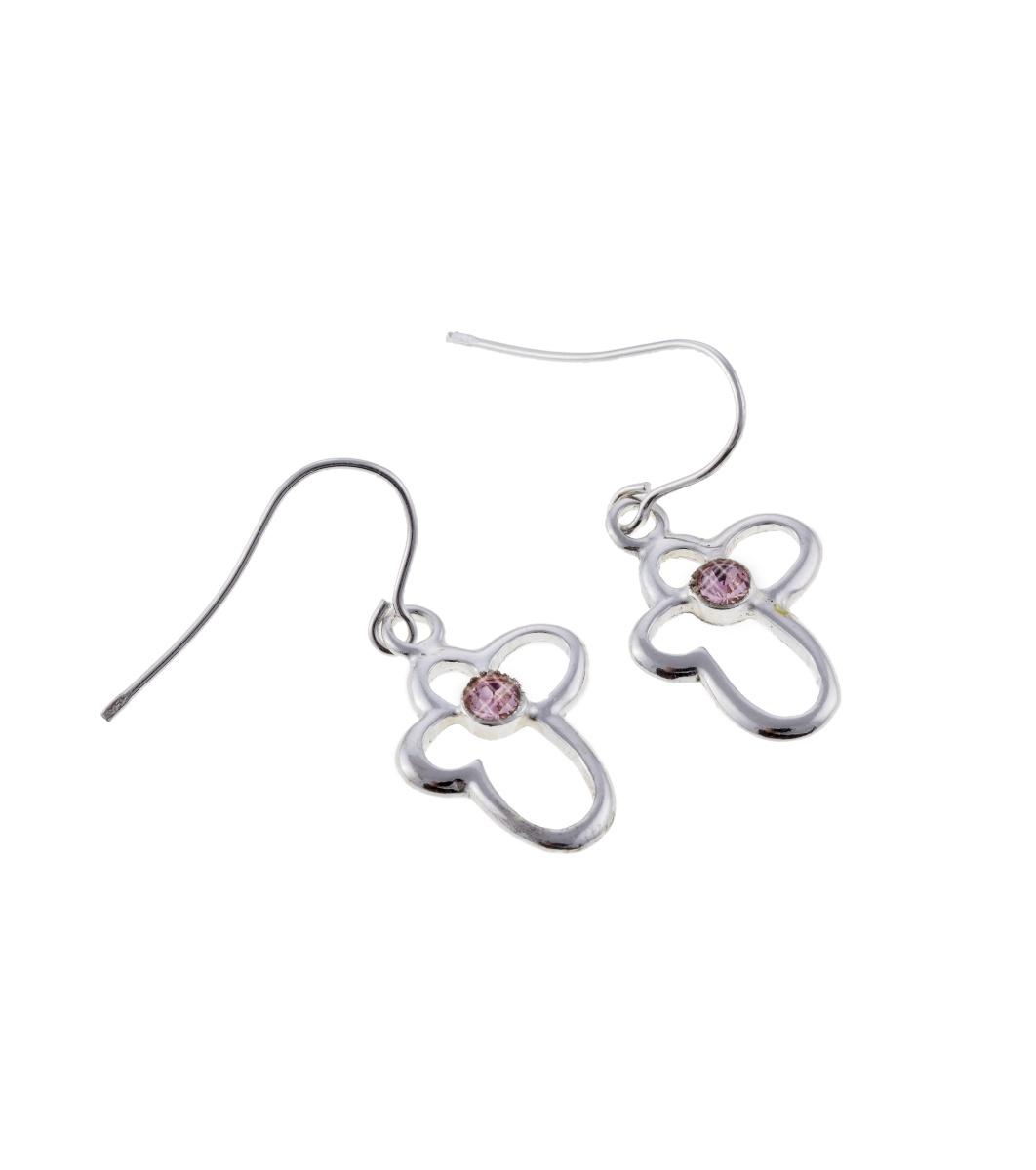 Cercei eleganți cu cârlig și elemente decorative în formă de floare.