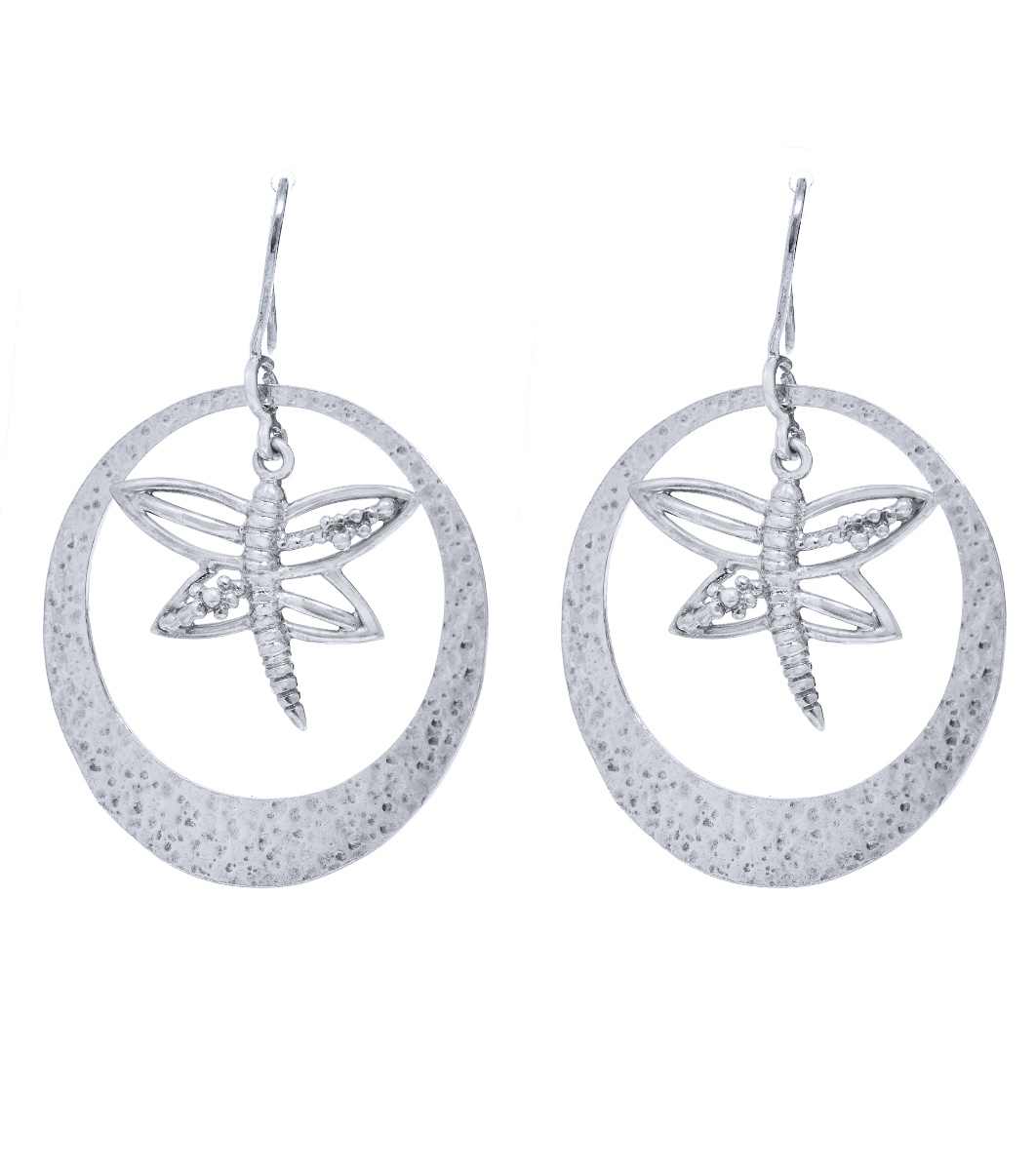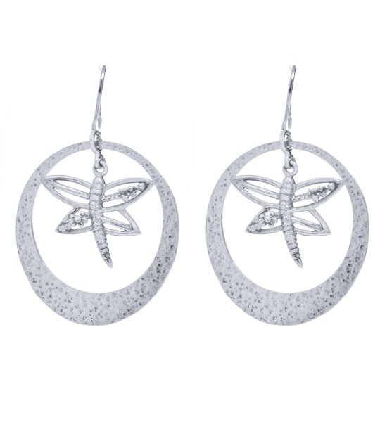 Cercei de damă cu pandantiv în formă de dragon. Designul include o bază rotundă cu elemente decorative.