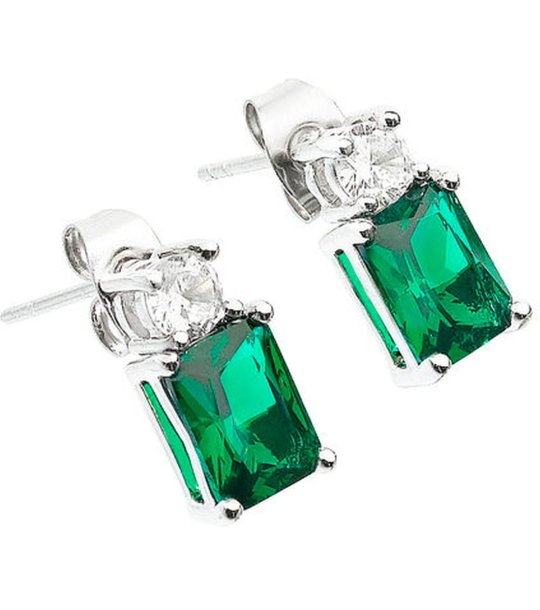 Cercei eleganți cu pietre dreptunghiulare. Designul include elemente strălucitoare și oferă un aspect sofisticat. Potriviti pentru diverse ocazii.