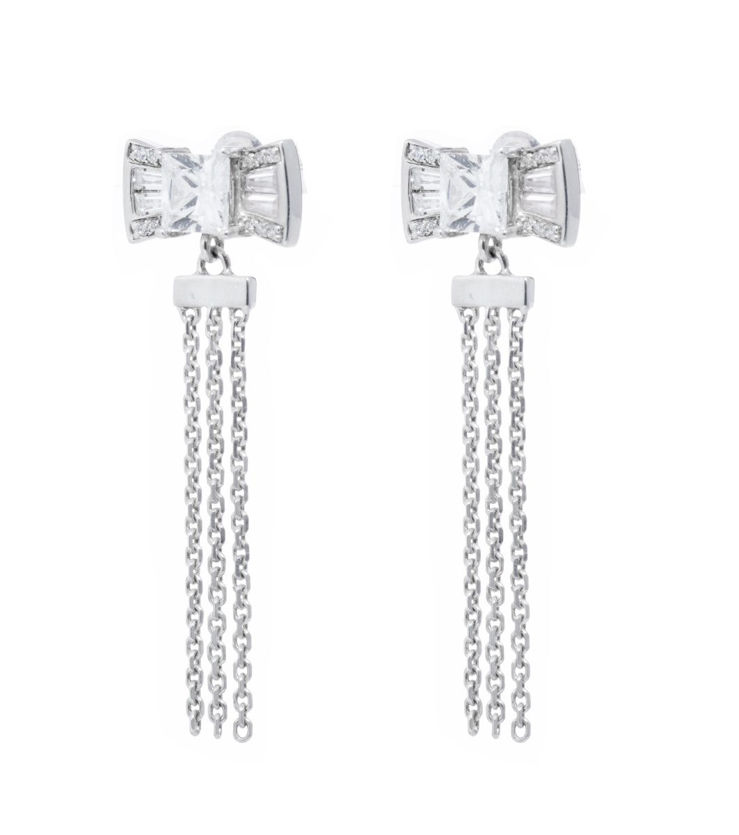 Cercei eleganți cu lanțuri lungi și cristale strălucitoare. Potriviti pentru diverse ocazii, adaugă rafinament și stil aspectului.