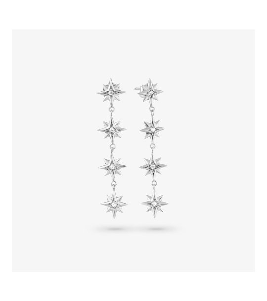 Cercei lungi cu mai multe elemente conectate în formă de stea. Potriviti pentru ocazii speciale și pentru uz zilnic.