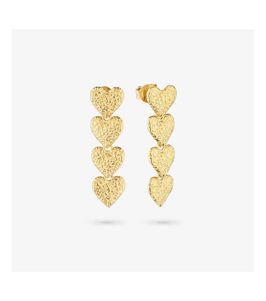 Cercei lungi eleganți cu mai multe elemente în formă de inimă conectate.