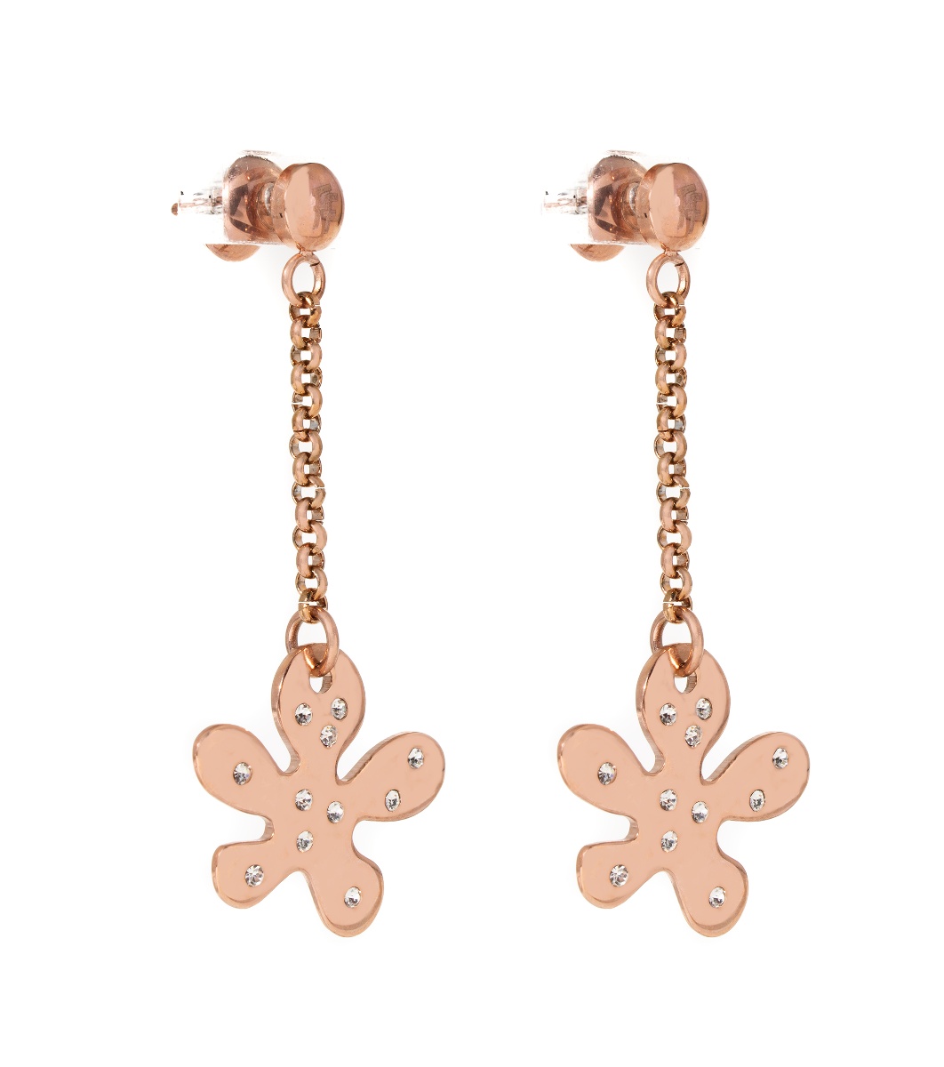 Cercei lungi eleganți cu pandantive elegante în formă de floare. Cerceii sunt prevăzuți cu lanțuri care oferă mișcare și strălucire suplimentare.