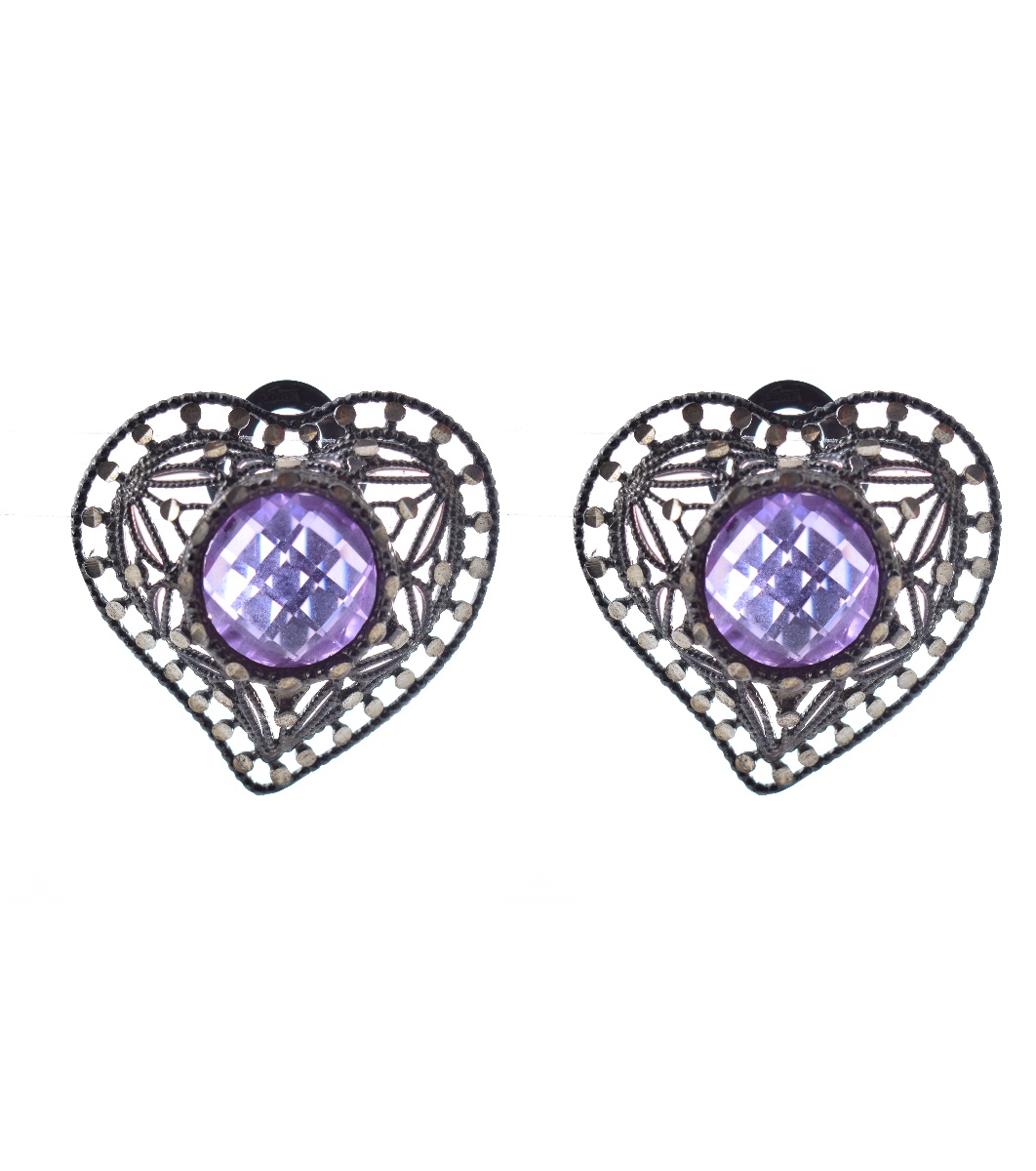 Cercei rafinați cu elemente proeminente, modelate în formă de inimă. Accent decorativ central cu o suprafață fațetată, înconjurată de detalii ajurate.