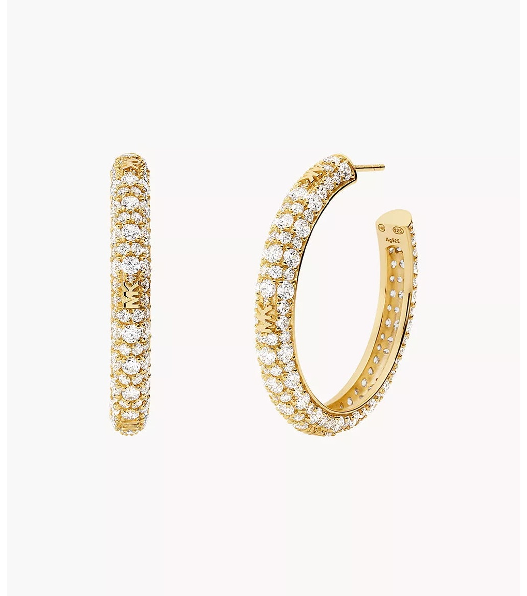Cercei eleganți de formă rotundă, potriviți pentru femei. Se disting prin numeroasele pietre strălucitoare aranjate în rânduri.