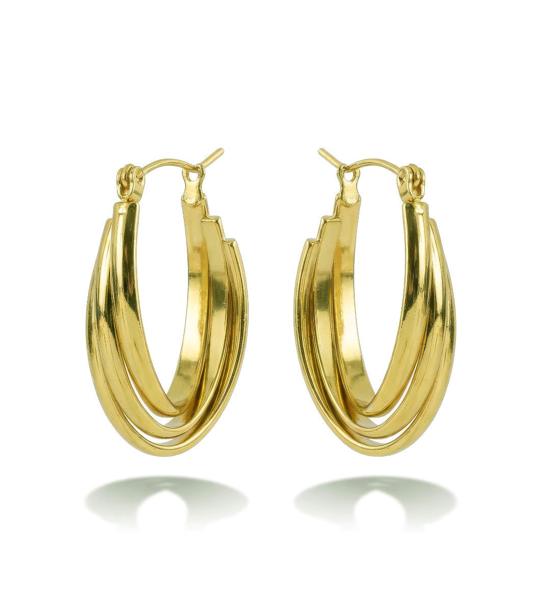 Cercei rotunzi din oțel inoxidabil auriu, cu design pe mai multe rânduri