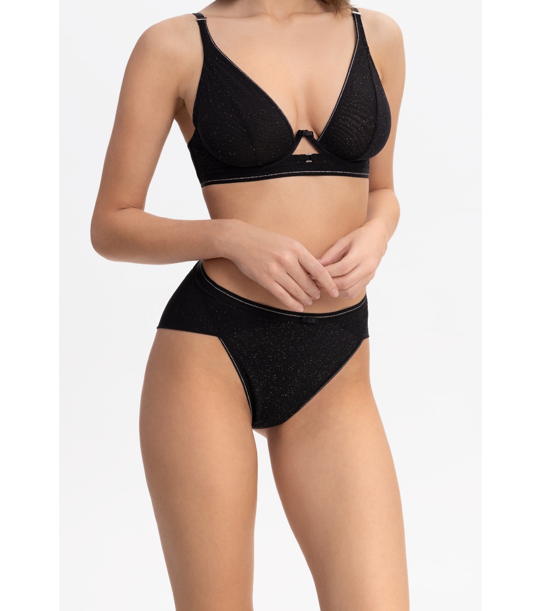Chiloți brazilieni negri cu talie înaltă DEEP NIGHT