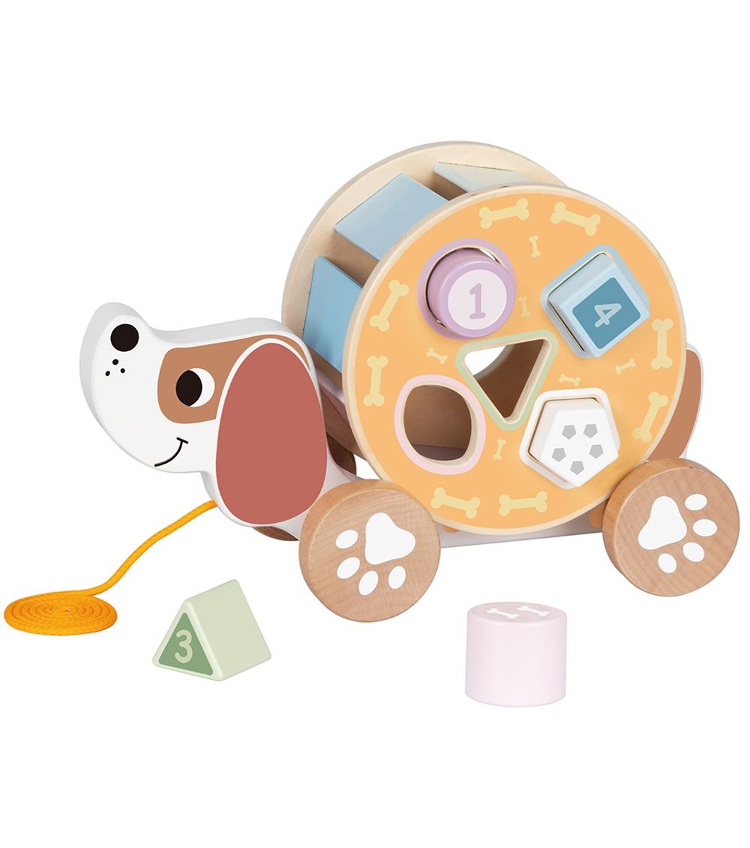 Căutați o jucărie educativă care dezvoltă abilitățile motorii și imaginația? Vă prezentăm un câine de sortat și de tras din lemn în culori pastelate, potrivit pentru învățarea prin joacă!