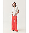Cămașă de damă cu croială dreaptă și lejeră, cu guler clasic cu revere. Închiderea se face cu nasturi în față pe toată lungimea. Mânecile sunt scurte, cu manșetă rulată. Spatele are un panou elegant și o ușoară pliu la mijloc. Linia de jos este rotunjită.