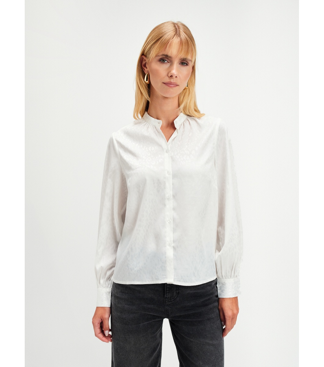 Top Secret Cămașă albă de damă cu jacard Bluză de damă cu mâneci lungi