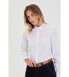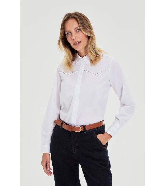 Cămașă albă de damă cu mânecă lungă și ochiuri decorative