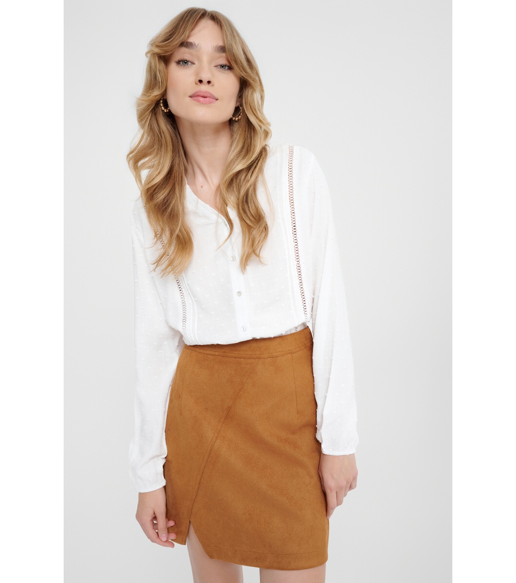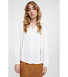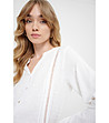 Cămașă albă de damă cu nasturi și dungi ajurate