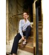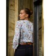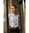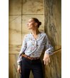 Cămașă de damă cu mâneci lungi și decolteu în V cu nasture scurt în față.