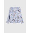 Moodo Cămașă albastră de damă cu imprimeu floral Cămașă de damă cu mâneci lungi și decolteu în V cu nasture scurt în față.