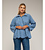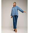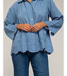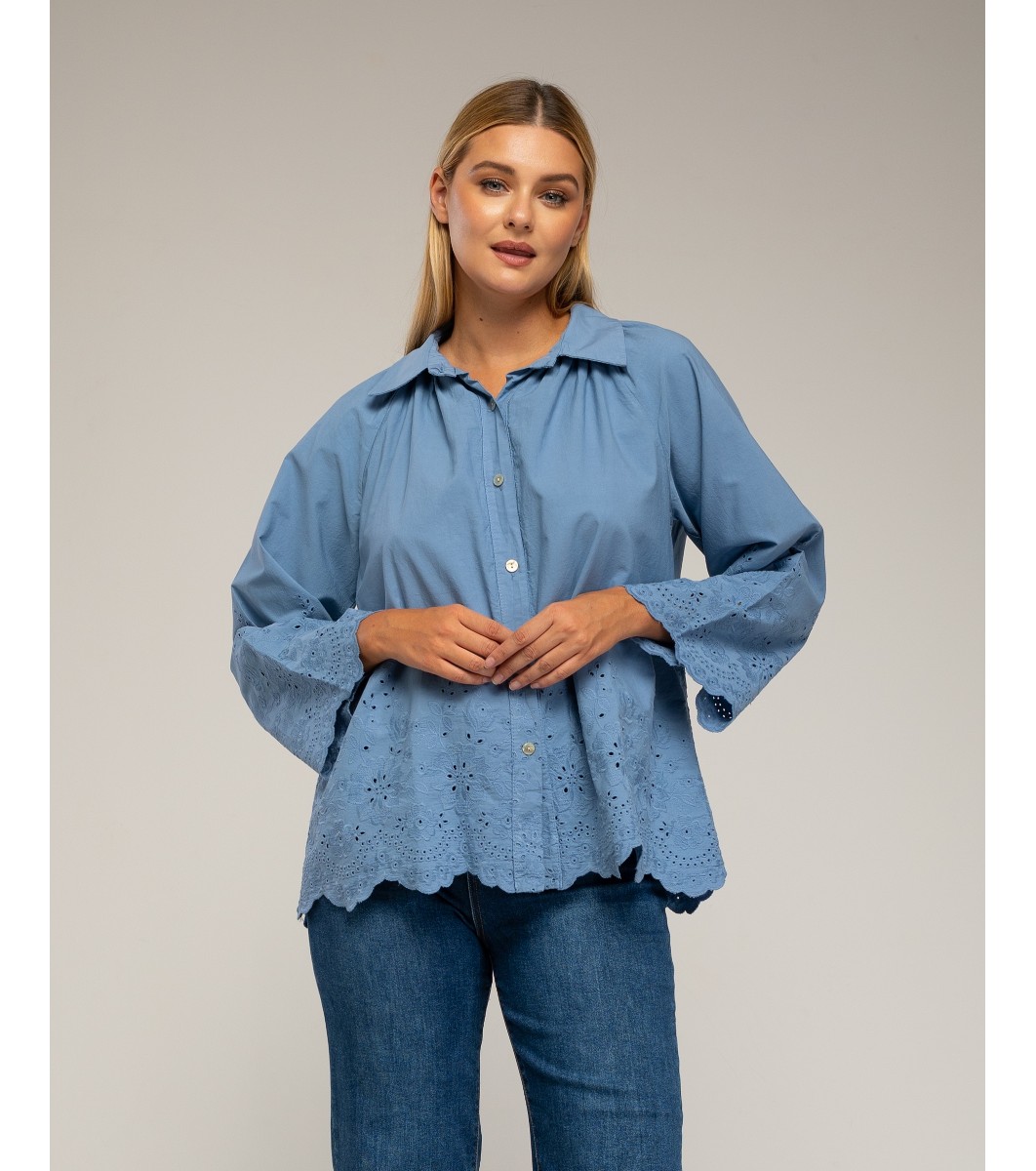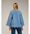 Cămașă albastră supradimensionată din bumbac pentru femei, cu broderie englezească