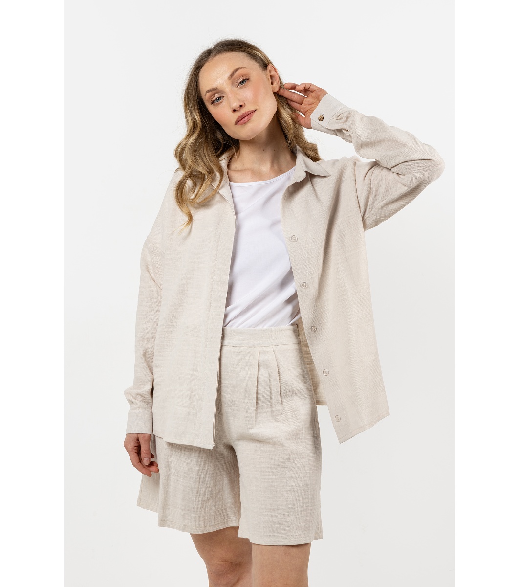 Awama Cămașă bej din bumbac pentru femei Guler clasic