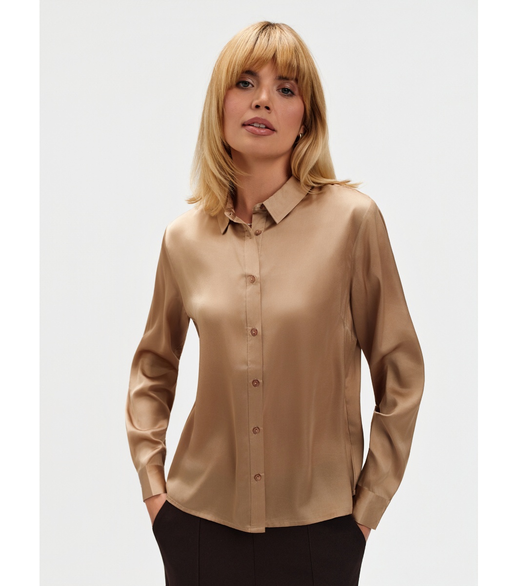 Top Secret Cămașă bej din satin Model clasic cu guler cămașă și mâneci lungi
