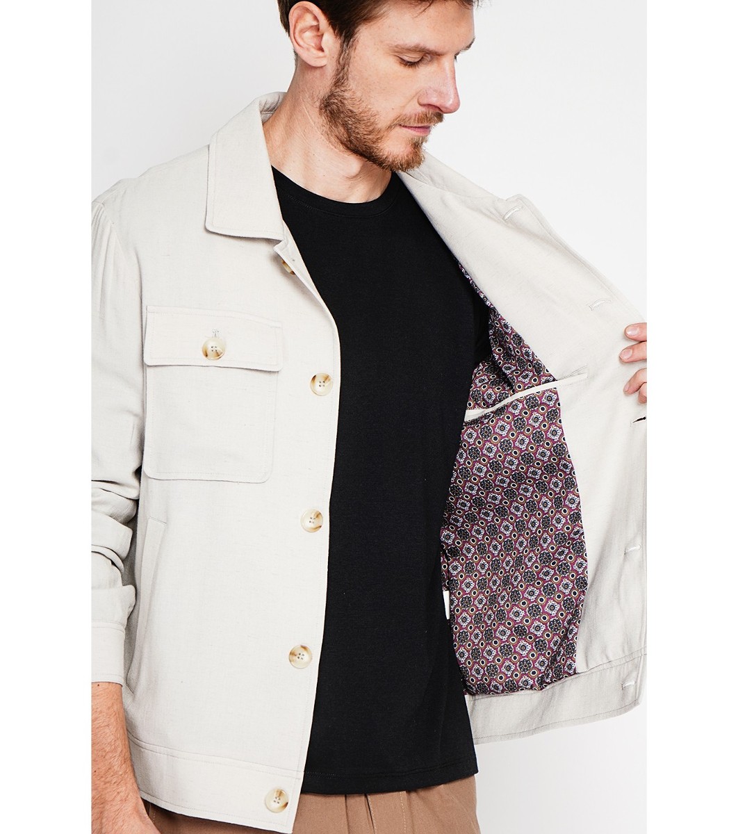 Secret Du Lin Cămașă bărbătească LIN bej cu guler clasic Cămașă cu siluetă dreaptă și guler clasic.