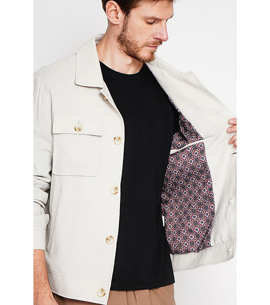 Cămașă bărbătească LIN bej cu guler clasic