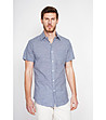 Secret Du Lin Cămașă bărbătească albastră în carouri MARINE Cămașă cu croială dreaptă.