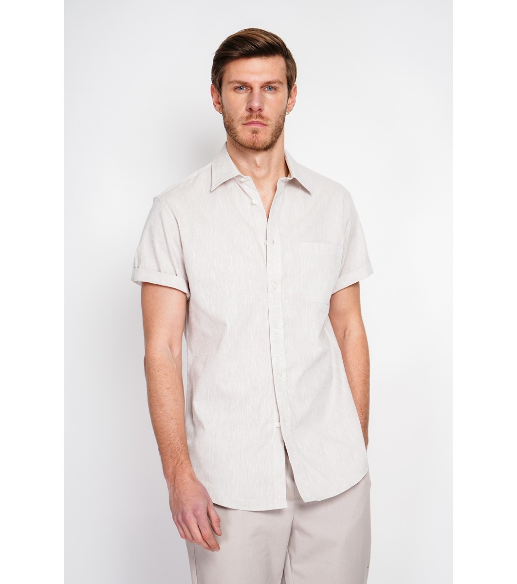 Cămașă bărbătească bej cu mânecă scurtă LIN