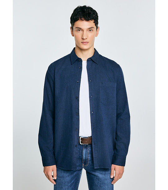 Cămașă bărbătească cu mânecă lungă, din bumbac albastru GREST