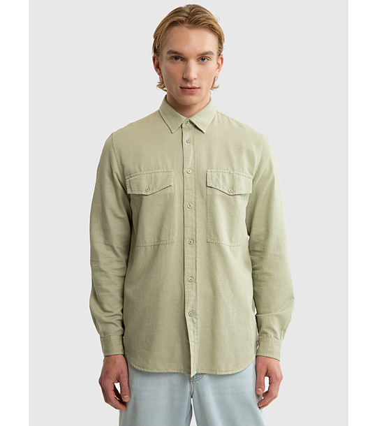 Cămașă bărbătească din bumbac, de culoare verde deschis, SZAKES