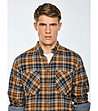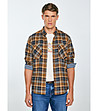 Cămașă bărbătească din bumbac în carouri, albastră și galbenă, KOLISAR