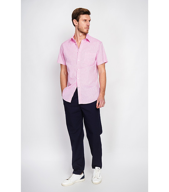 Secret Du Lin Cămașă bărbătească roz cu mânecă scurtă ROSEE Croială dreaptă.