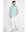 Secret Du Lin Cămașă bărbătească verde în carouri cu mâneci scurte JADE Siluetă dreaptă.