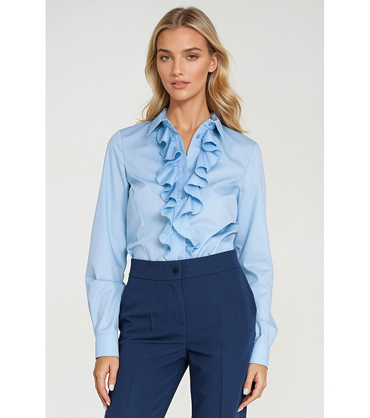 Nife Cămașă de damă albastru deschis cu volan Material cu conținut ridicat de bumbac