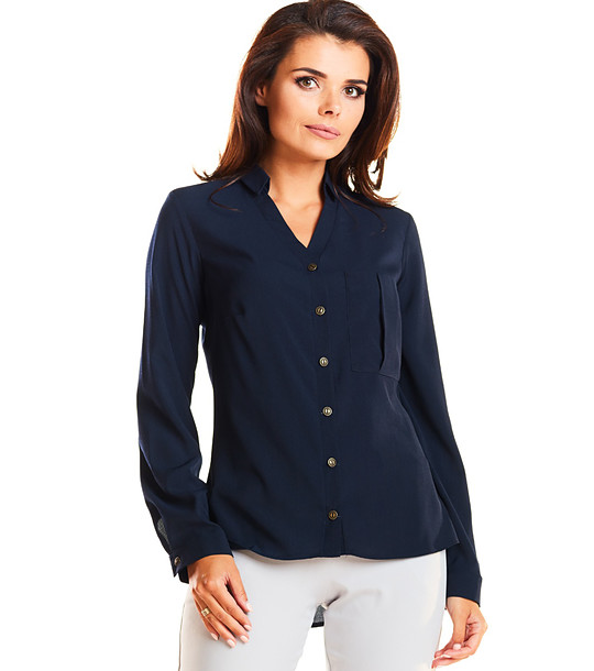 Infinite you Cămașă de damă albastru închis cu buzunar Flavia Decolteu în V cu guler