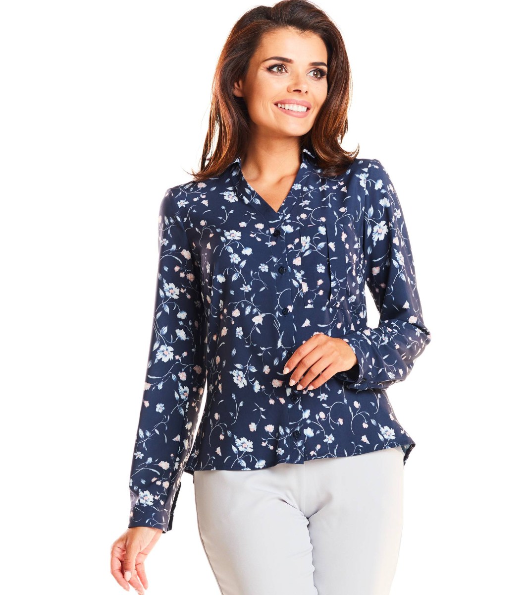 Cămașă de damă albastru închis cu imprimeu alb Flavia