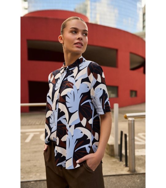 Moodo Cămașă de damă albastru închis cu mânecă scurtă și imprimeu Cămașă cu croială dreaptă.