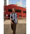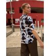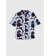 Cămașă de damă albastru închis cu mânecă scurtă și imprimeu