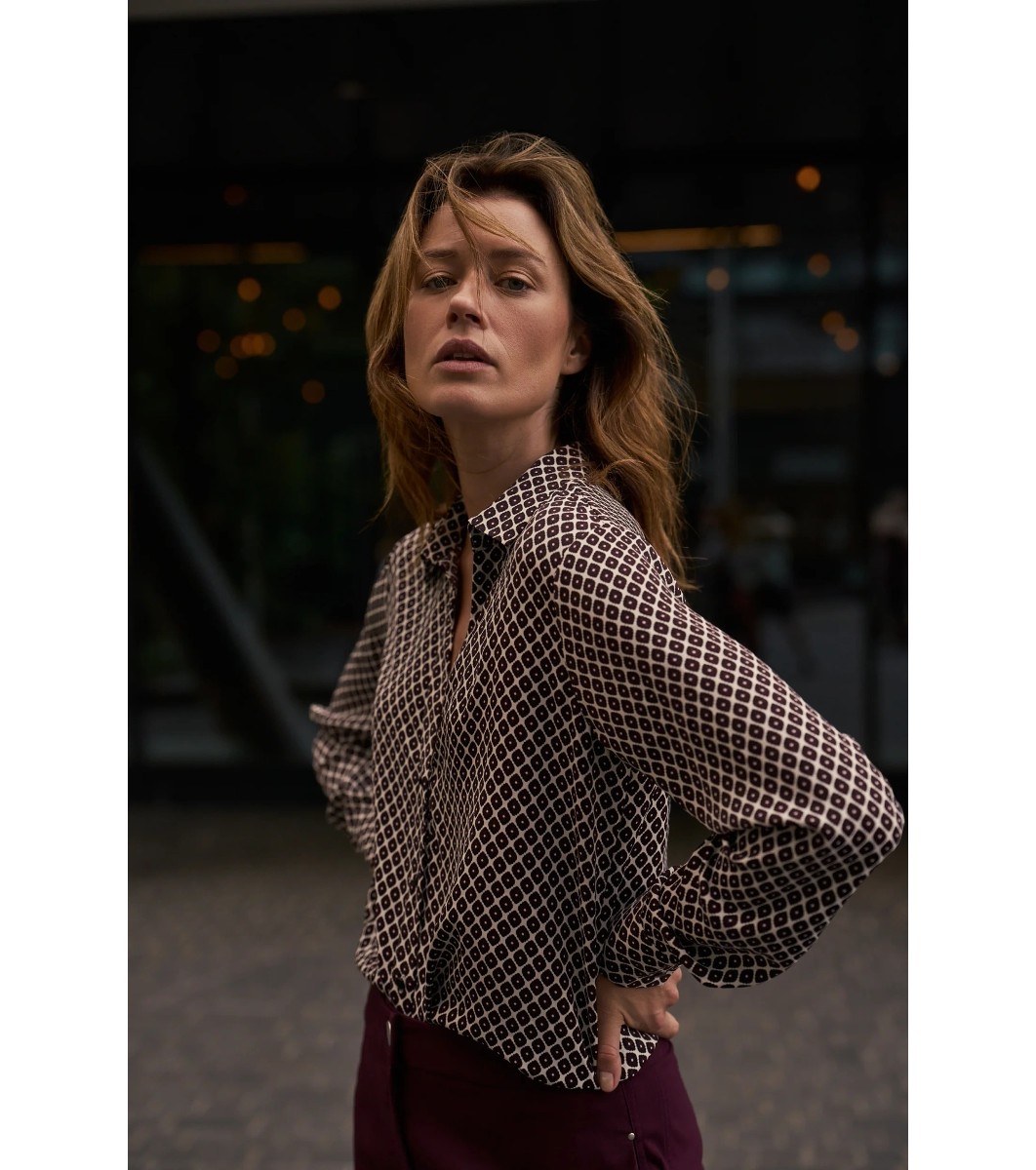 Cămașă de damă cu imprimeu crem și maro