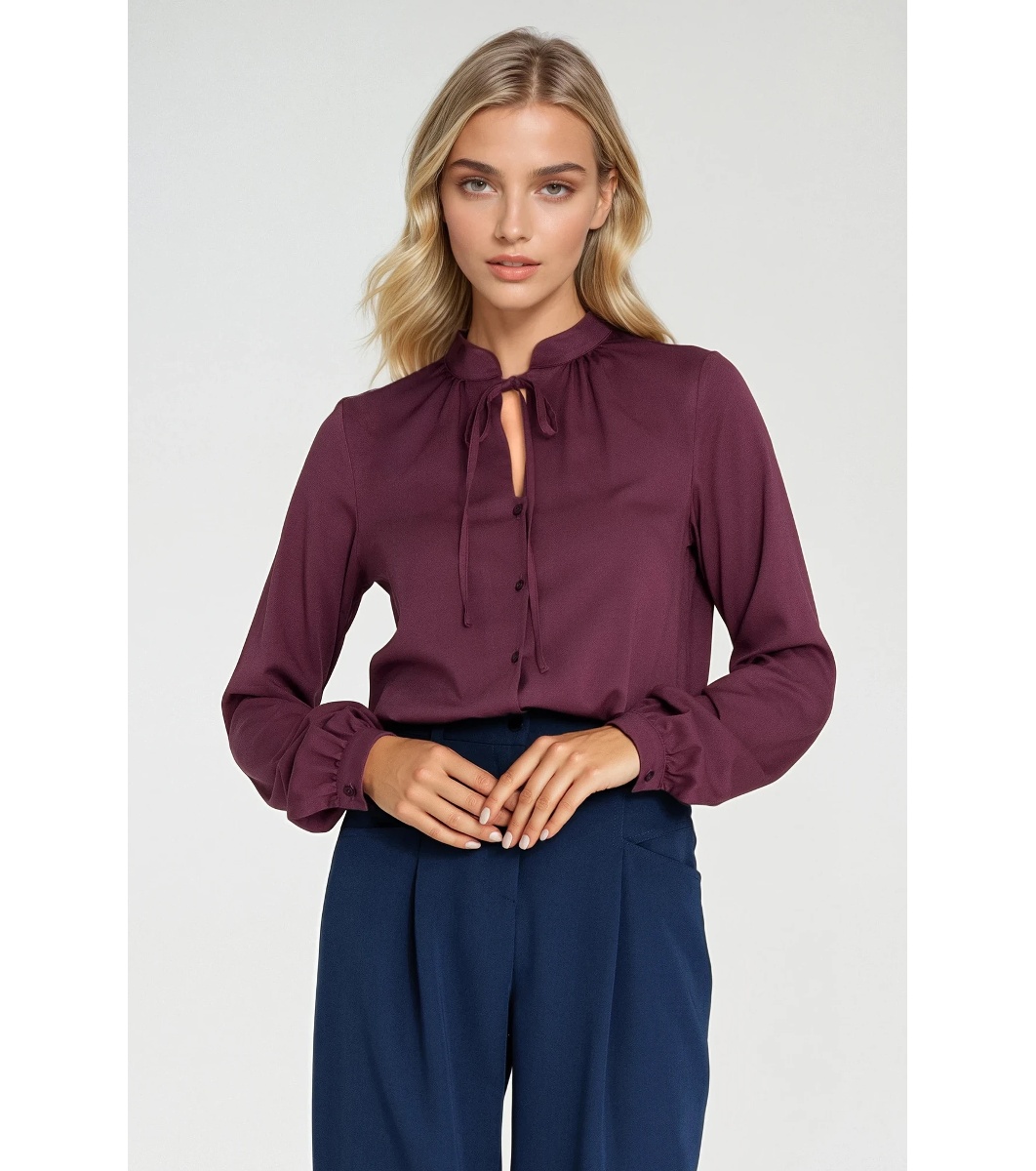 Nife Cămașă de damă de culoare prună Legătură la decolteu