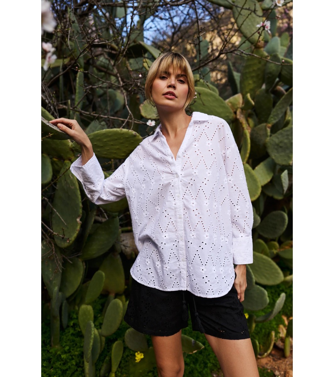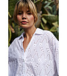 Moodo Cămașă de damă din bumbac alb, cu perforații Guler clasic