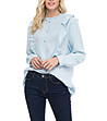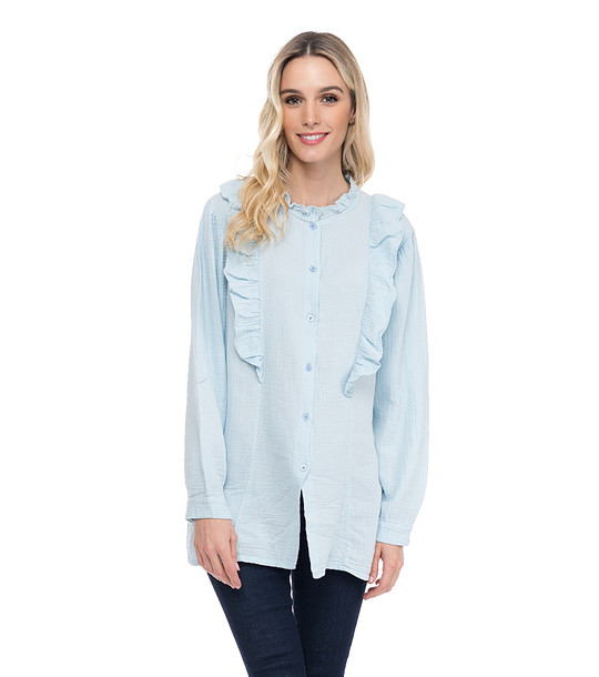 Cămașă de damă din bumbac albastru deschis cu volane