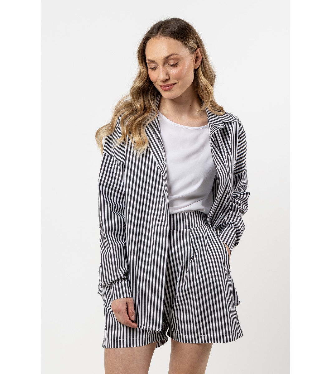Awama Cămașă de damă din bumbac cu dungi albe și negre Guler clasic