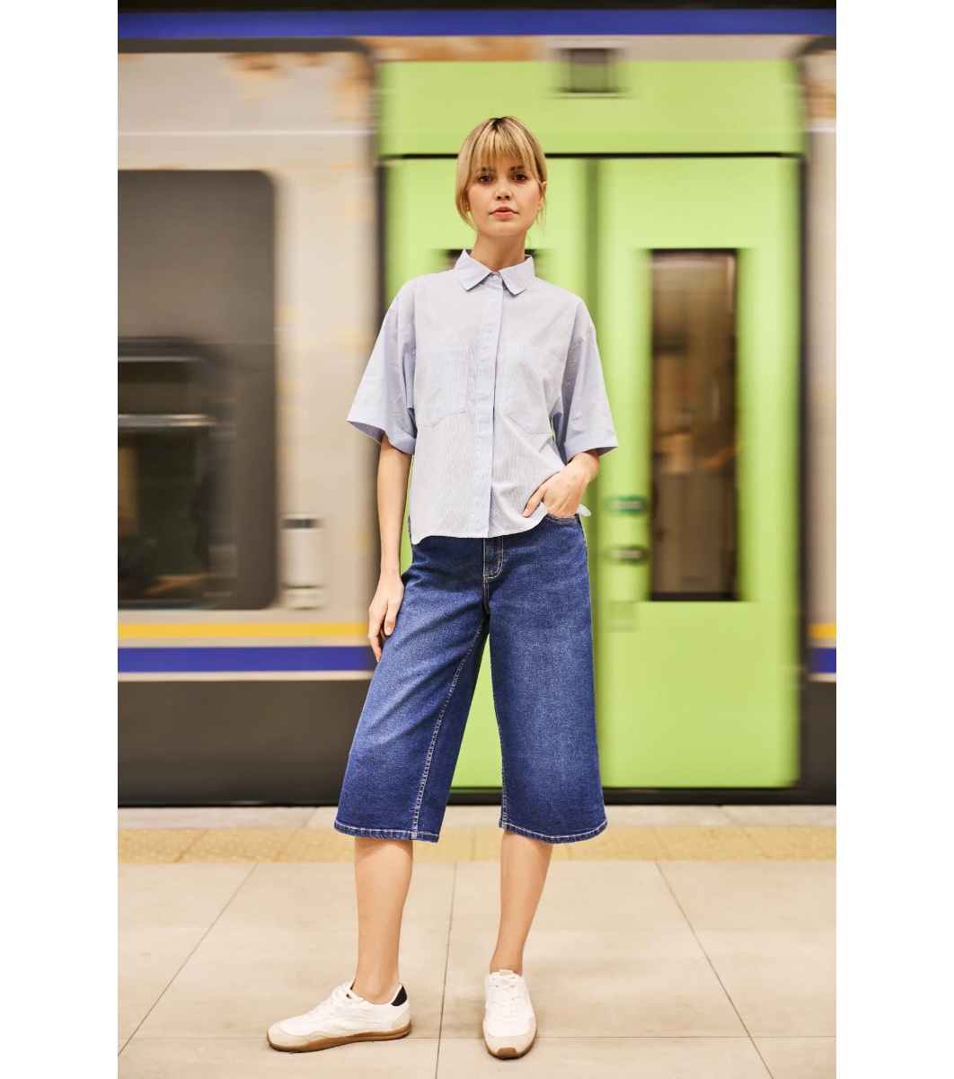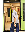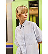 Cămașă de damă din bumbac cu dungi fine în alb și albastru