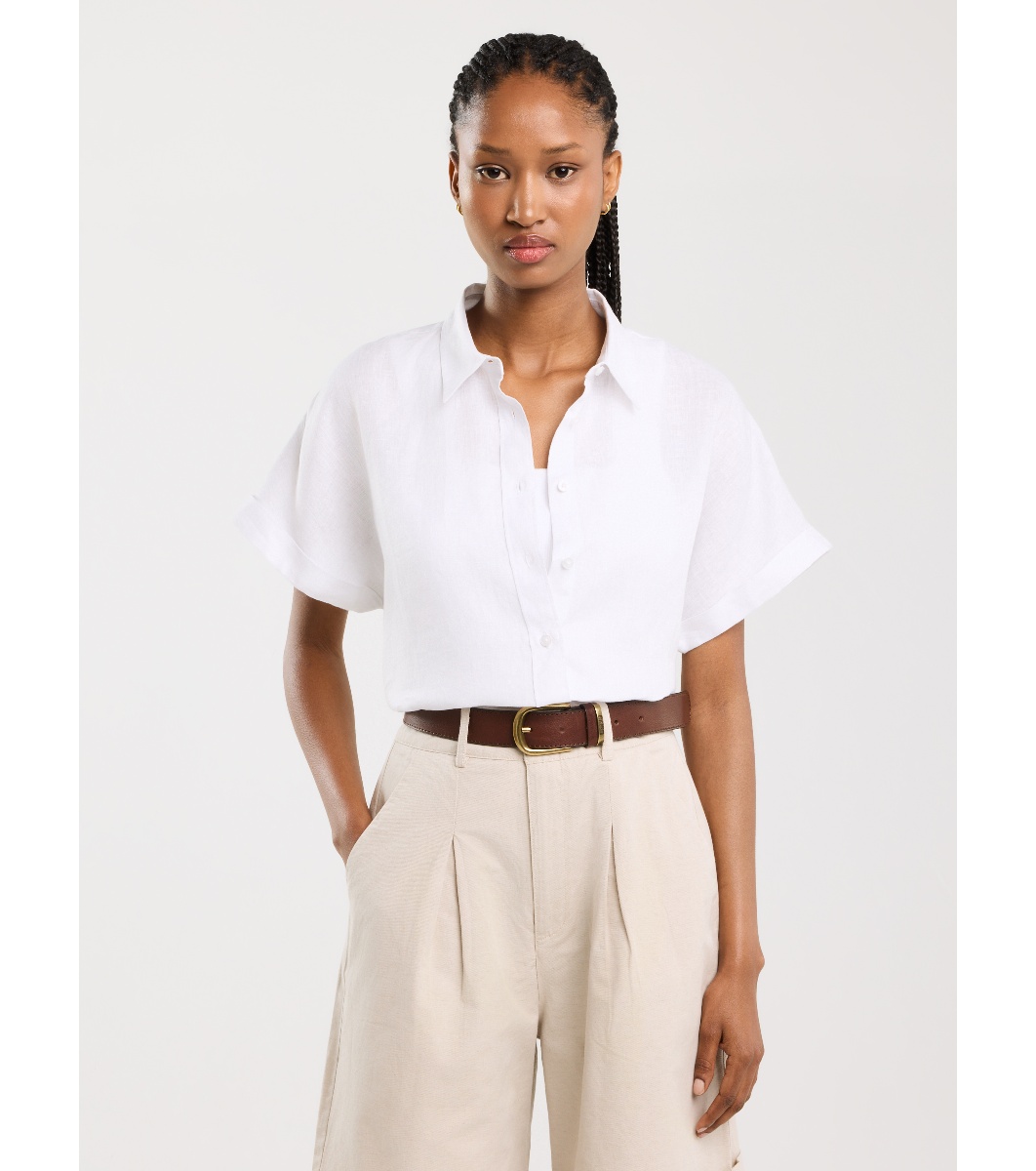 Cămașă de damă din in alb RIORE