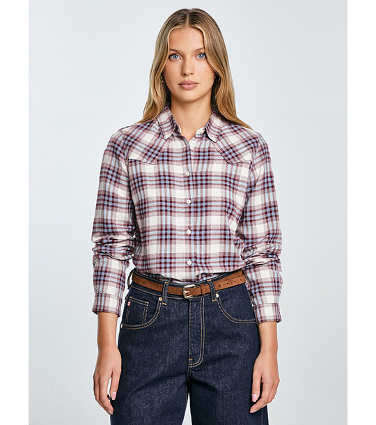 Cămașă de damă în carouri cu mânecă lungă DRENI