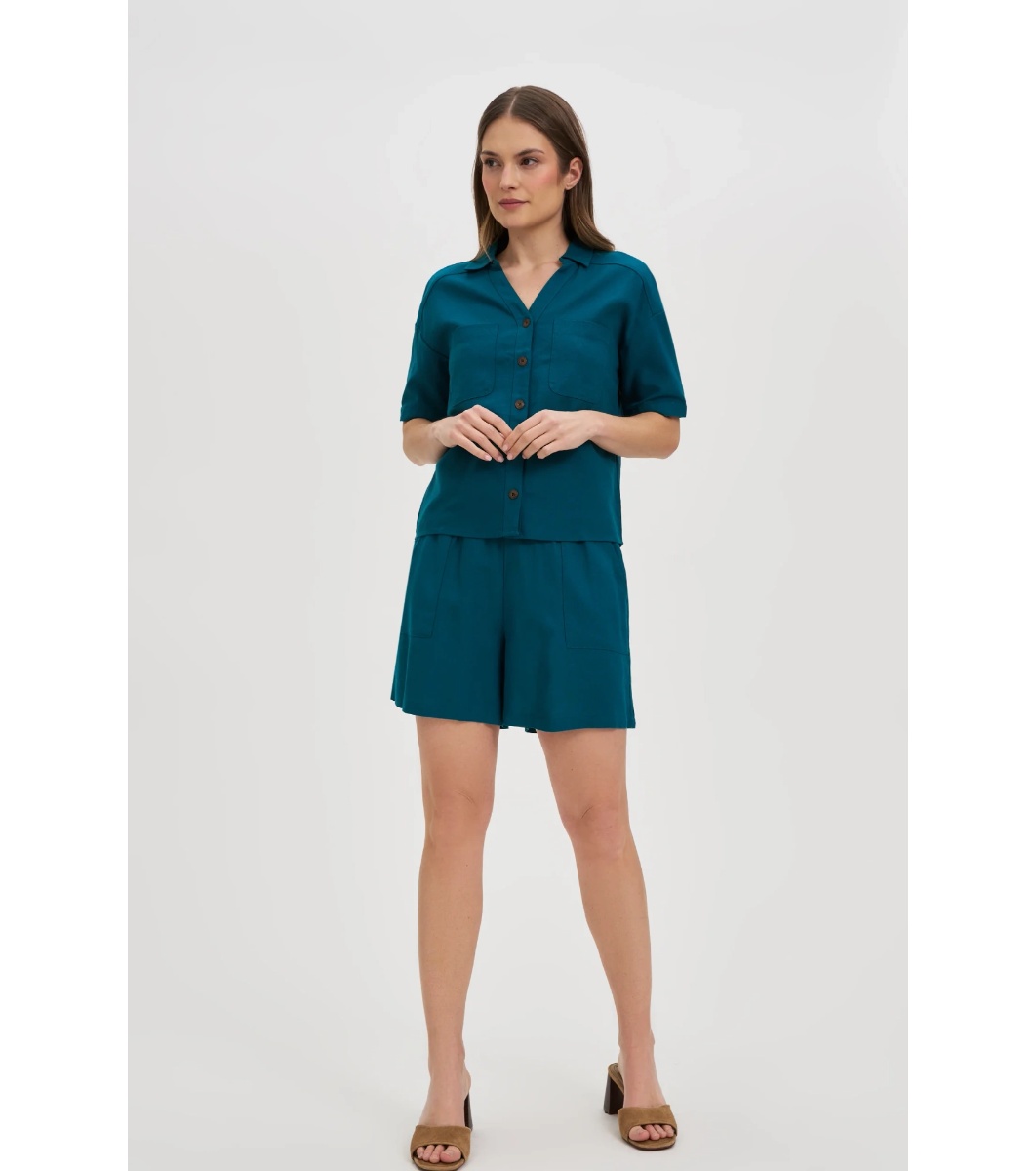 Moodo Cămașă de damă în culoarea petrolului Guler clasic