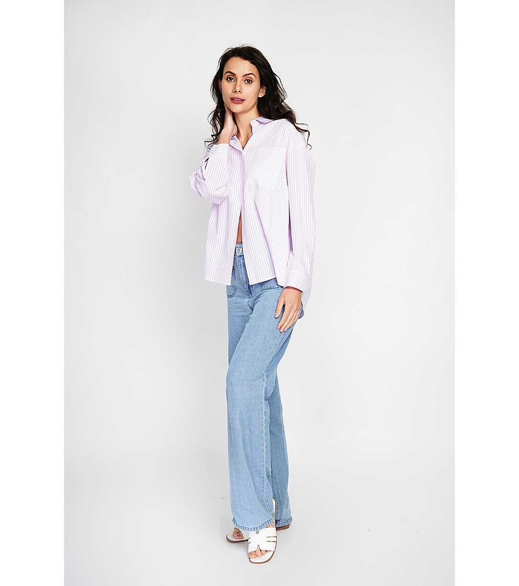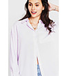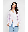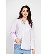 Cămașă de damă în dungi din bumbac și in în alb și violet deschis Lenitta